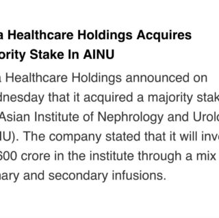Newsroom Turning heads with our headlines! September 20, 2023 By ahHoldings GIC, TPG Buys Major Stake in Hospital Chain View now September 20, 2023 By ahHoldings Asia Health Buys Kidney Care Hospital AINU for Rs.600 crore View now September 20, 2023 By ahHoldings Asia Healthcare Acquires over 70% stake in AINU for Rs.600 cr View now September 20, 2023 By ahHoldings AHH Acquired AINU for Rs.600cr View now September 20, 2023 By ahHoldings GIC-TPG fund takes majority stake in AINU View now September 20, 2023 By ahHoldings Business News Highlights: Yatra Online IPO Subscribed 1.61 Times On Final Day Of Offer View now 1 … 3 4 5 … 9